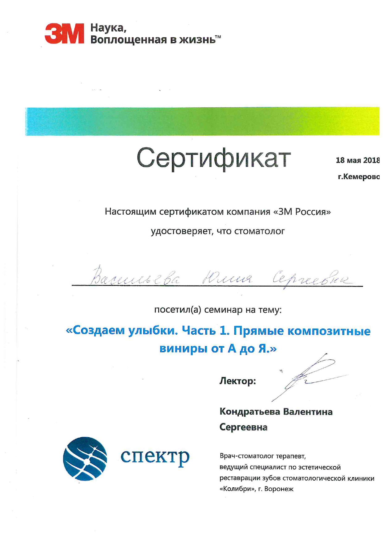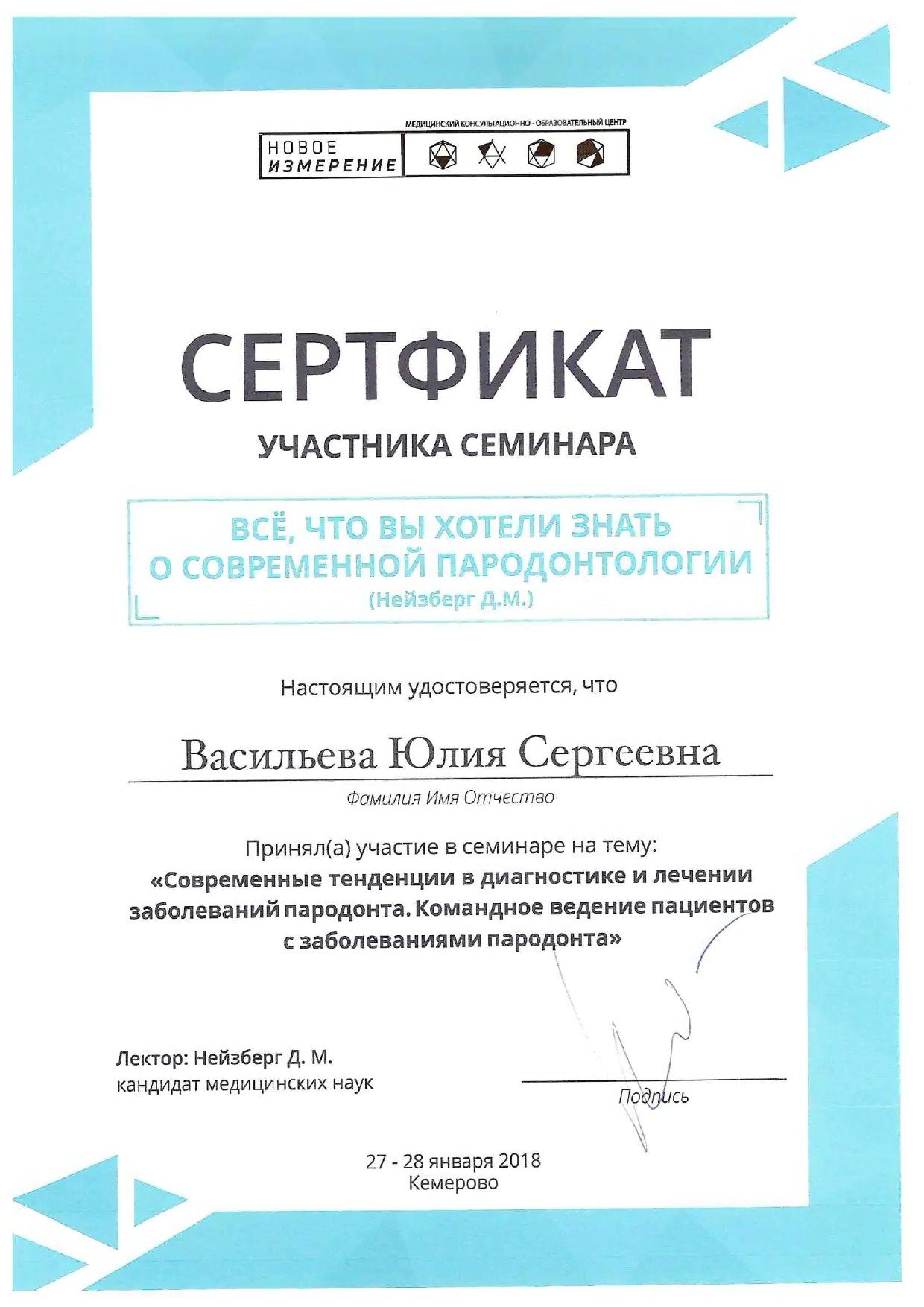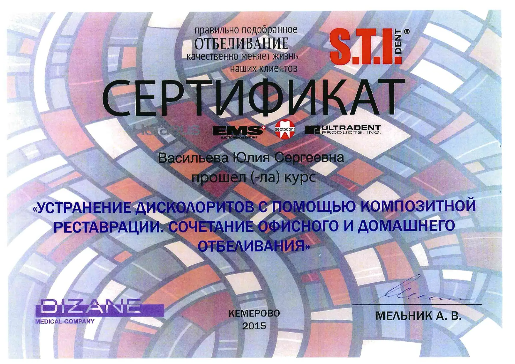 2015 г . — «Кемеровский государственный медицинский университет», стоматология терапевтическая (ординатура)